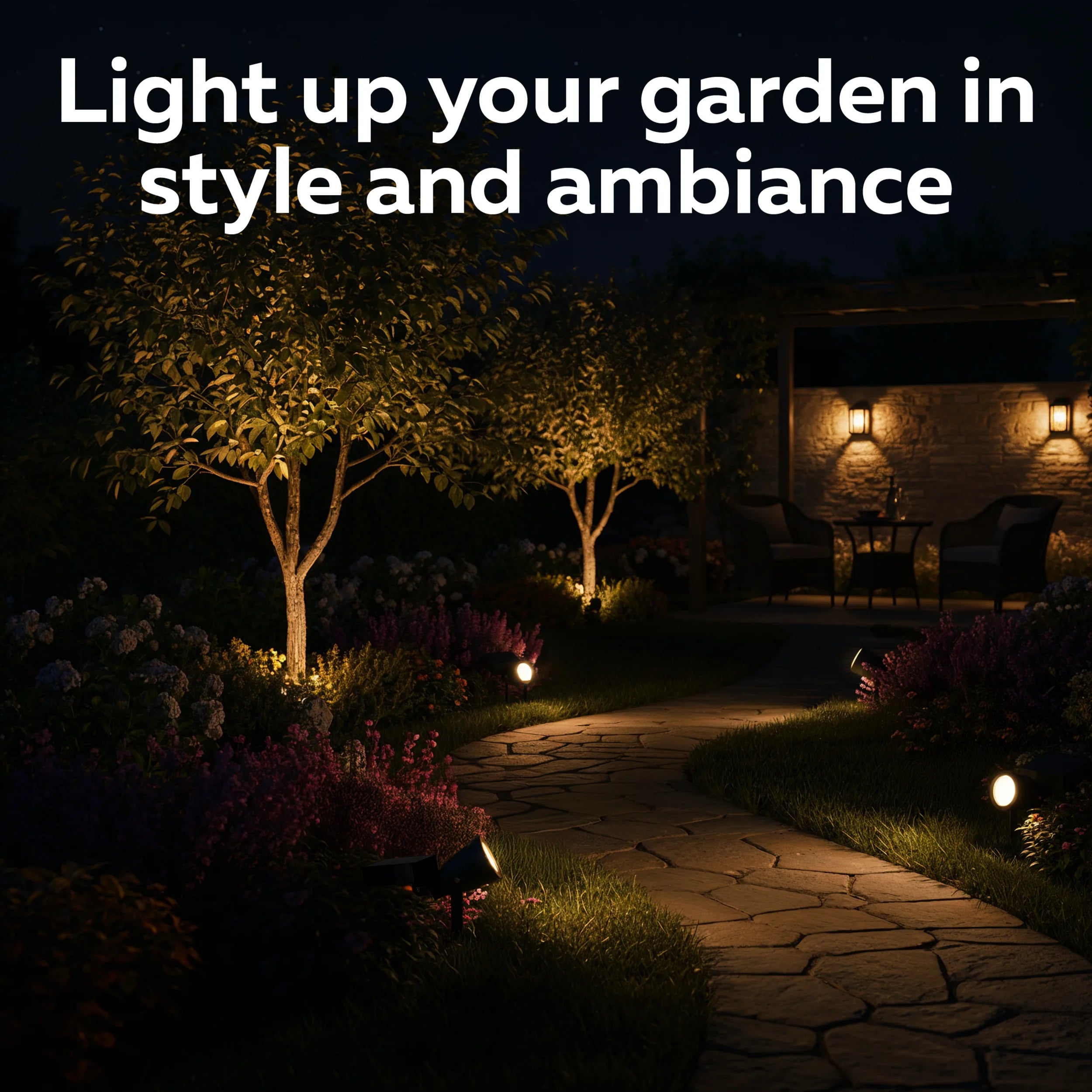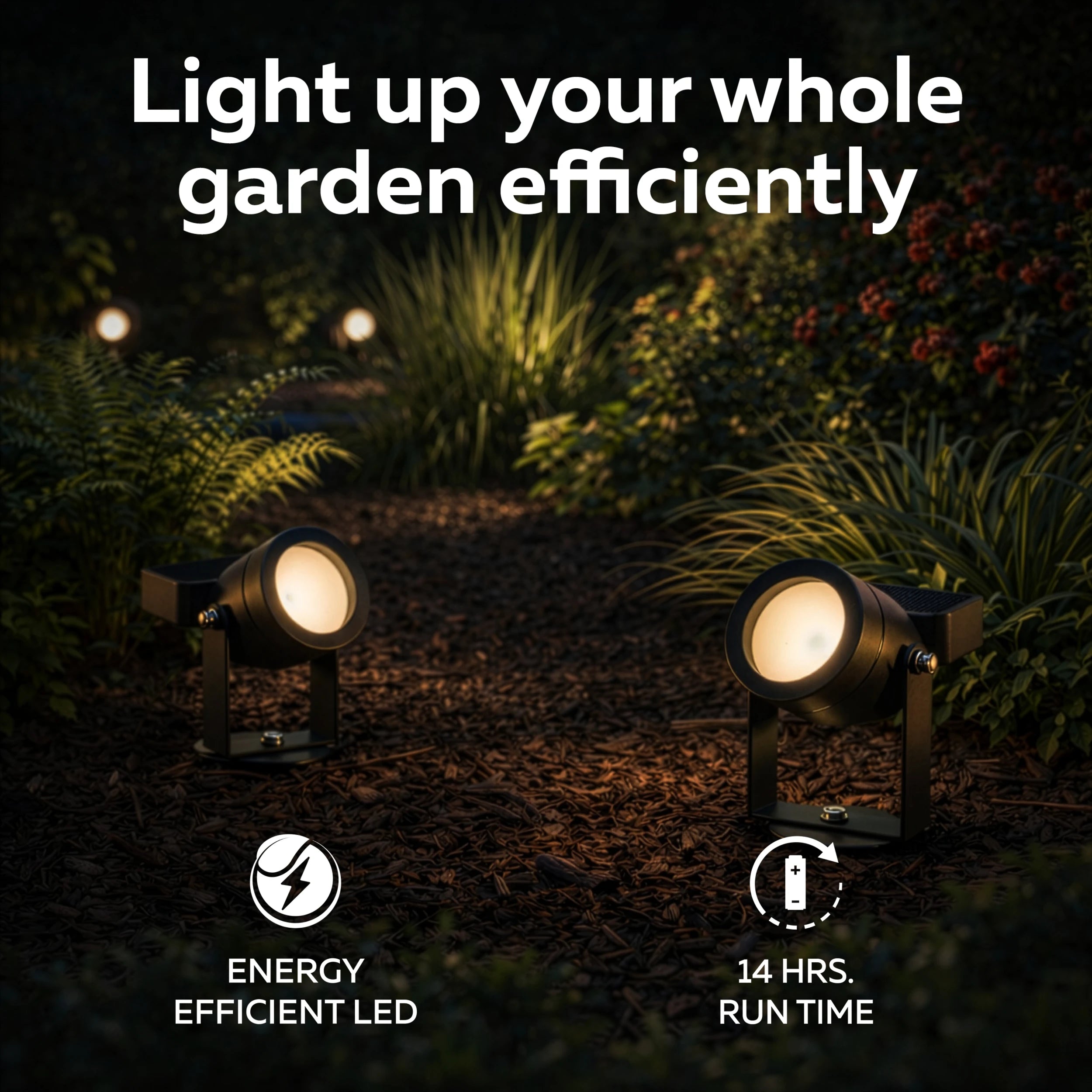 Le spot diffuse une lumière blanc chaud 2700K. Elle apporte une atmosphère chaleureuse le soir, sans éclairage trop agressif. Parfait pour les massifs, pots et détails du jardin.