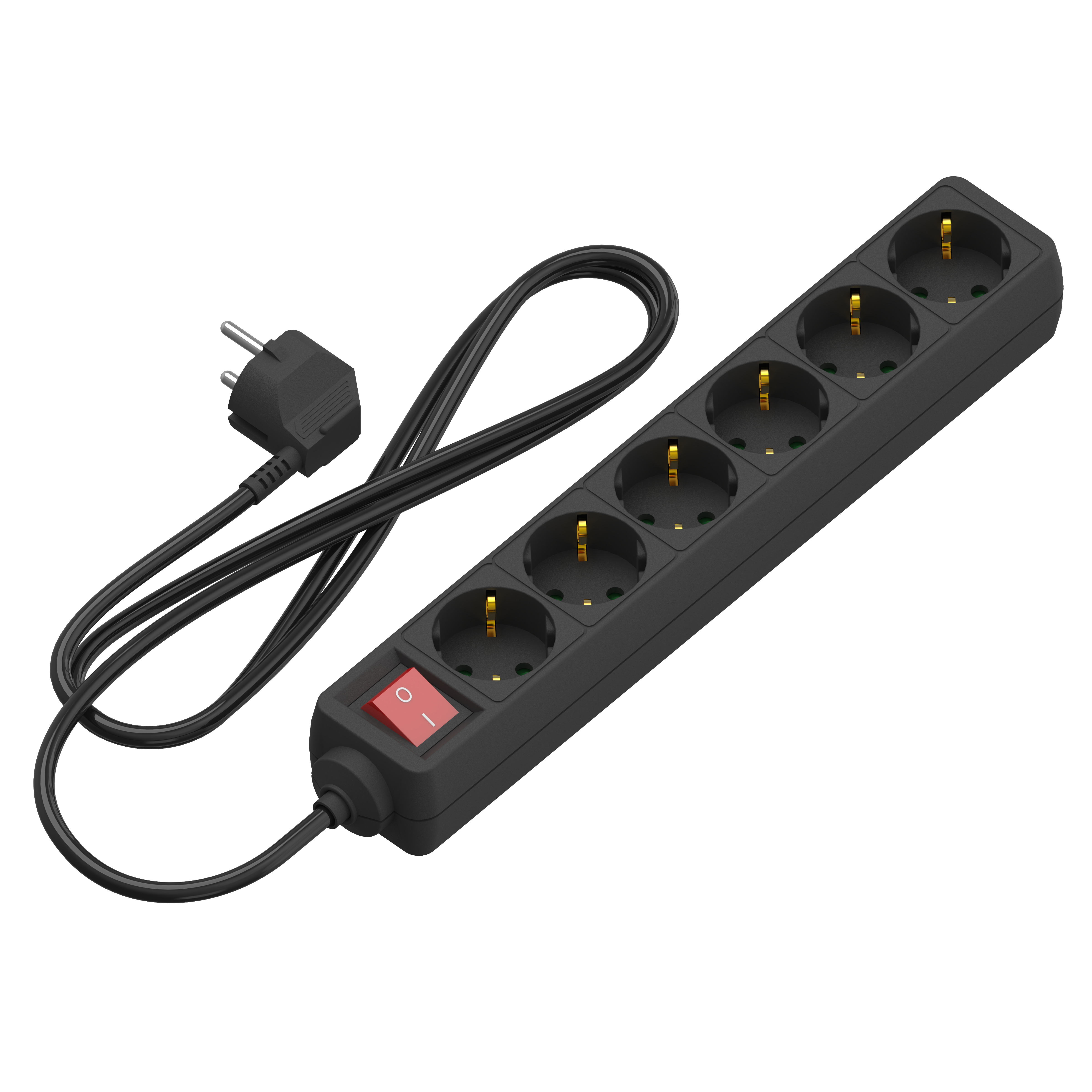 Calex - tafelcontactdoos - 6-way - RA + switch - 1.4m - Zwart 3x1.5mm2